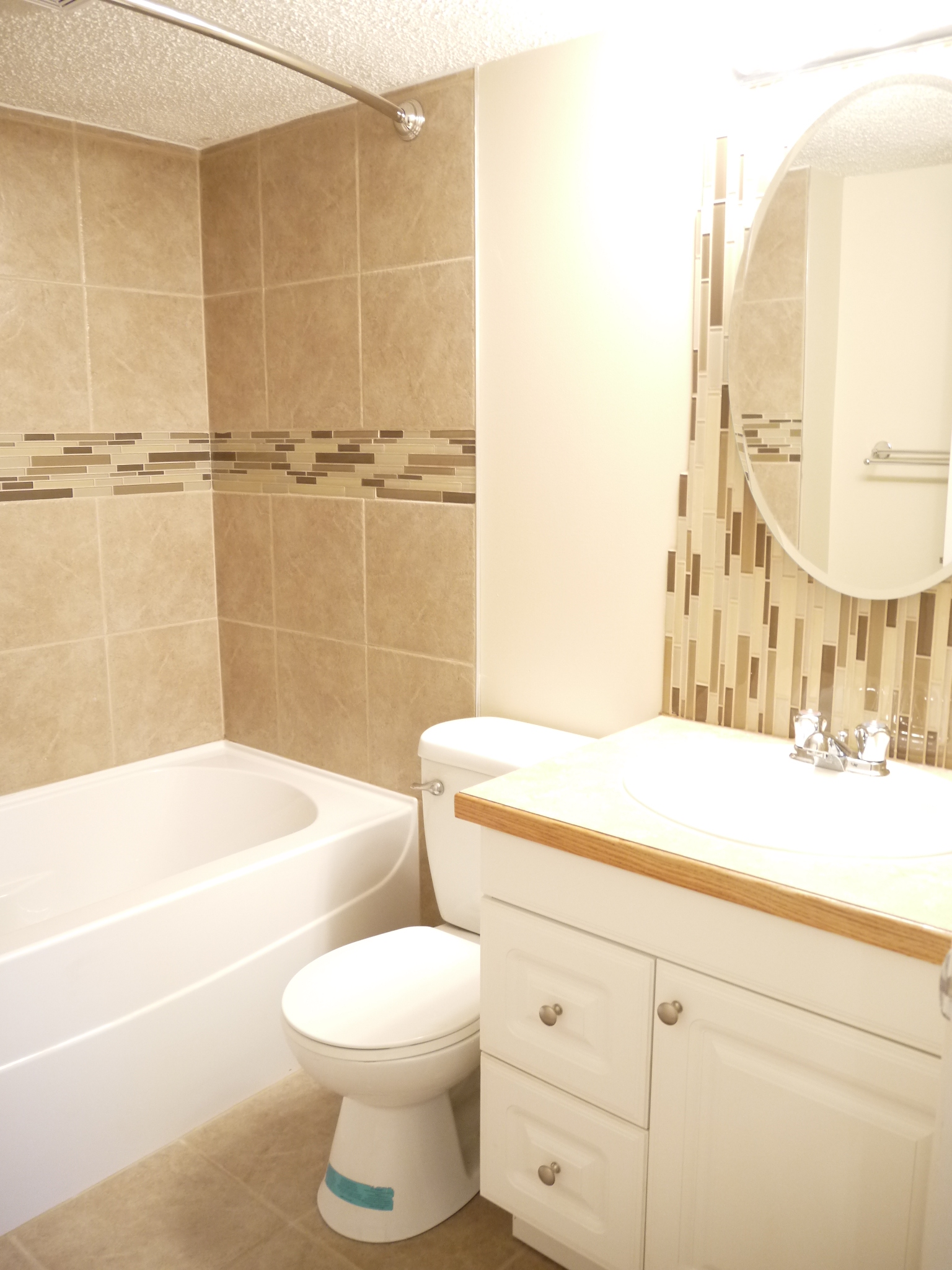 5. Beautiful artistically designed modern bathroom - with mosaic tile tub surround and vanity back-splash. Comes with newer tub, toilet, vanity, sink, floors and fixtures.