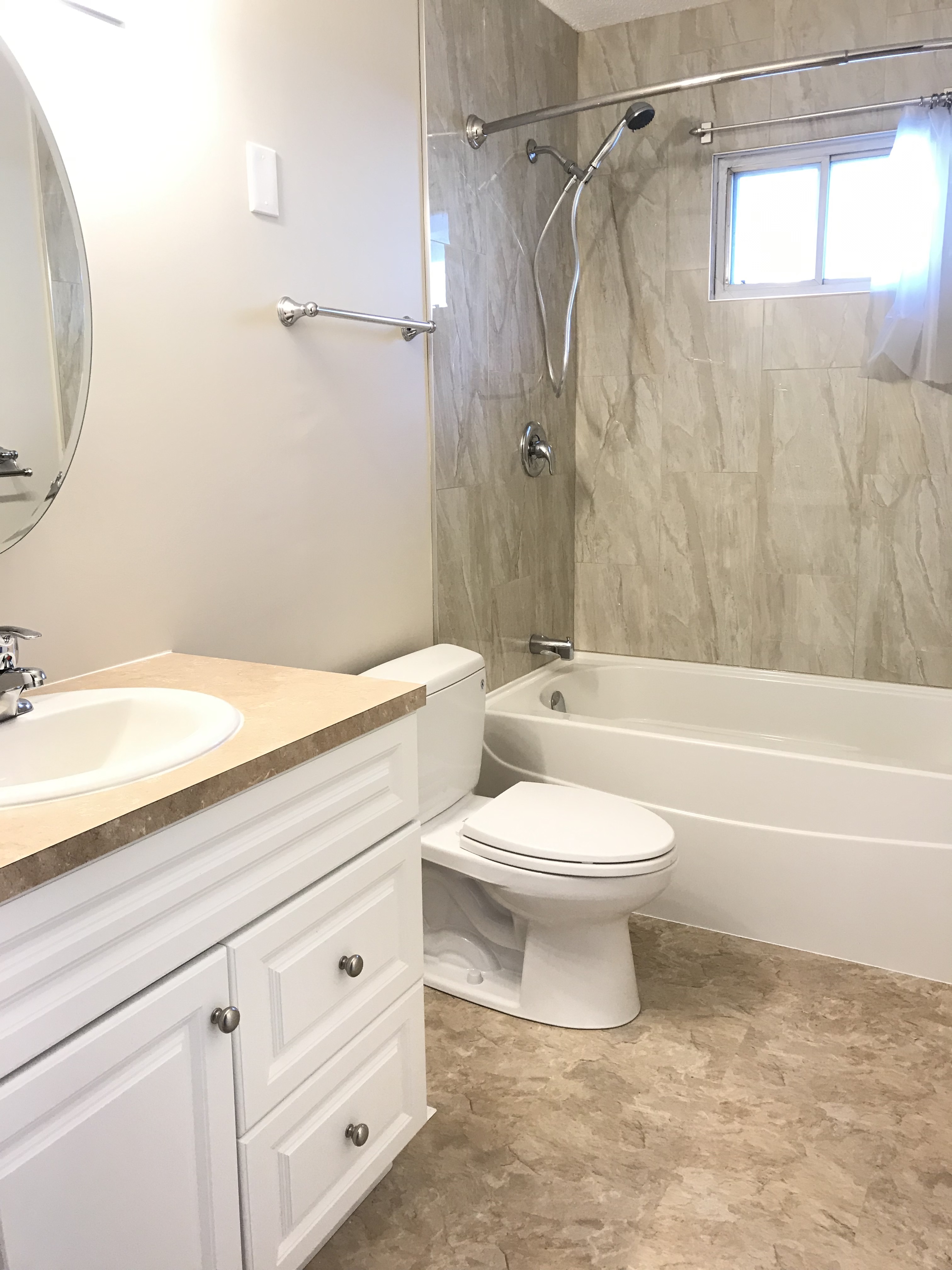 7. The main bathroom was recently newly renovated. We gutted the old one down and started from scratch. Soak in that luxurious new tub with marble-like tiled tub surround. Newer tub, toilet, sink, floors, vanity and fixtures. A bathroom that looks and feels like a spa. If you are picky about bathrooms, this will exceed your expectations.