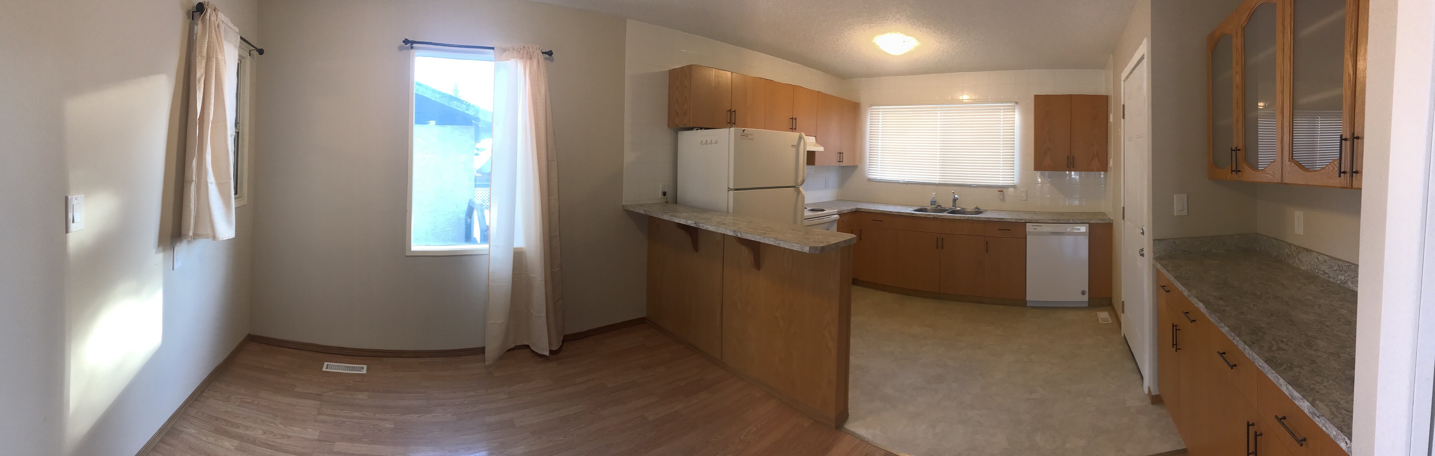 2. Recently reconditioned large kitchen overlooking the backyard. Lots of cupboard and countertop space. Comes with breakfast bar, double sink and a DISHWASHER. You will love to cook here